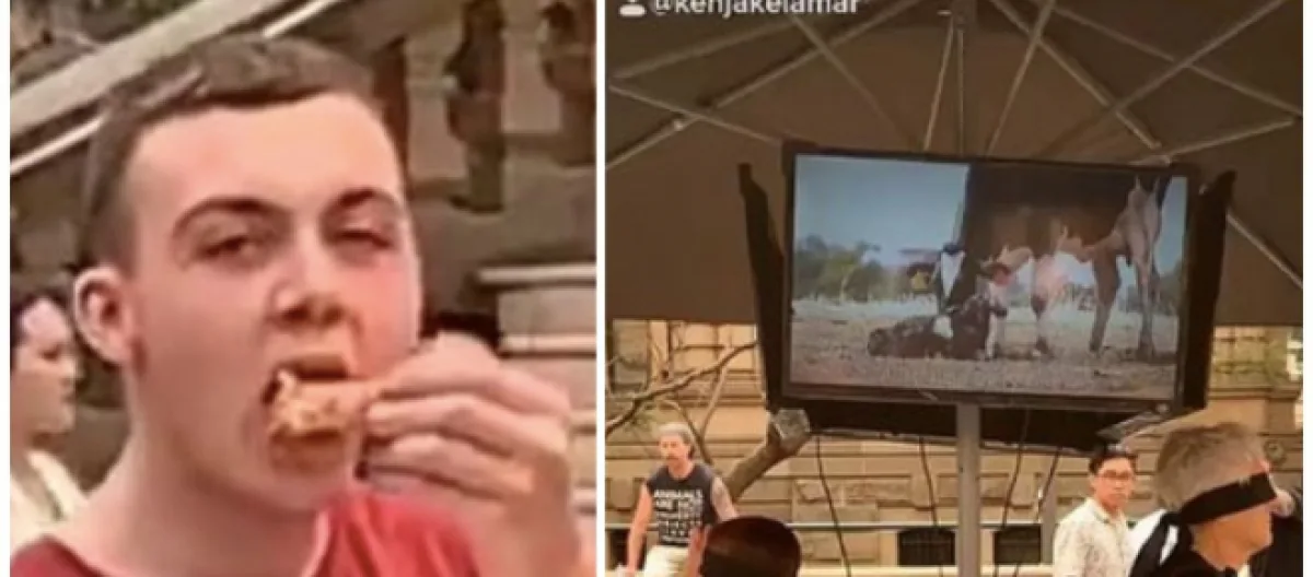 La vidéo aux 2 millions de vues a été publiée ce lundi 9 décembre sur TikTok par KenJake Lamar. Elle dévoile une situation qui a fait controverse : on y voit des membres du groupe activiste végane Cube Of Truth en pleine manifestation devant la mairie de Sydney. Des images d'animaux égorgés, abattus et tués dans des conditions déplorables sont diffusées afin d'avertir les passants. Mais lorsque la caméra change d'angle, un garçon d'une vingtaine d'années apparaît, planté devant eux, tout en dévorant un bol de poulet frit provenant d'un fast-food.
