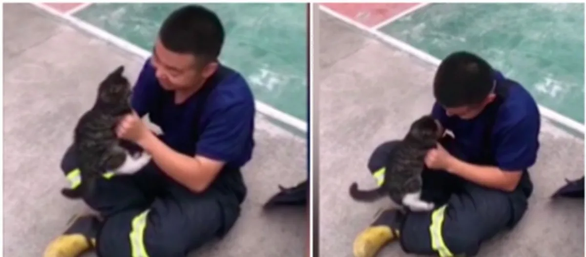 Un pompier chinois et un chaton pour une vidéo incroyable