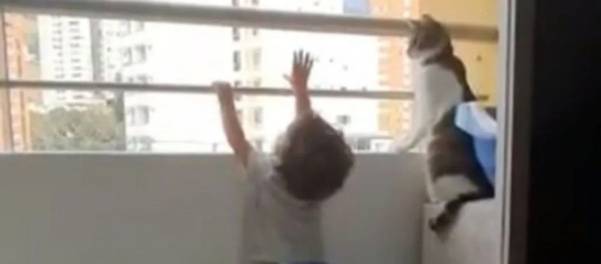 Alors qu'un enfant de trois ans s'approche de la barrière du balcon et qu'il essaye de l'enjamber, son chat (qui a aussi une fonction de baby-sitter) va avoir une réaction incroyable et va le sauver.