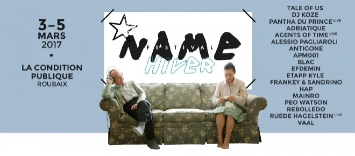 Pour cette première édition du N.A.M.E d’Hiver, l’association à voulu frapper un grand coup pour le weekend du 3 au 5 Mars 2017 avec un nouveau concept. Deux soirées fixes organisées à la Condition Publique à Roubaix, la première le vendredi 3 Mars et la deuxième le dimanche 5 Mars avec au programme: Vendredi : Mainro, Etapp Kyle, Rebolledo, Vaal, Agents of Time (live), Tale of Us, Effdemin, DJ Koze, Antigone, Peo Watson.