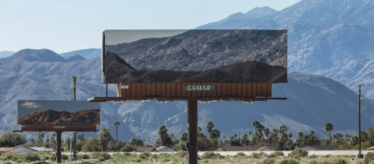 Son exposition géante qu'elle a nommé "Desert X" a un double objectif. D'abord remettre en valeur la beauté de cette région et de ses paysages désertiques. Qui s'y ballade y décèle d'emblée la charge cinématographique qu'ont ses clichés. Et puis évidemment une portée politique et sociale : le monde aspiré par l'omniprésence de la publicité peut retrouver sa place, naturelle.