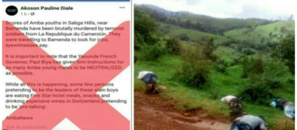 Actrice propagandiste à la solde d'un groupuscule de terroristes sécessionnistes, ce compte à l'instar de ses compères perturbateurs a véhiculé une image visiblement truquée. Il y est inscrit un texte truffé de mensonges suivi d'une image représentant 4 individus supposés abattus par les FDS. La propriétaire du post indique ensuite que cela s'est produit dans la localité de Sagba Hills, à quelques kilomètres de la ville de Bamenda (Nord-Ouest).