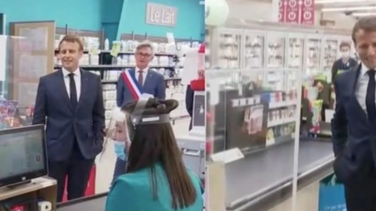 La visite continue et le président continue les gaffes. En effet, alors qu'il va à la rencontre des caissières et du personnel du drive il pose une question qui pourrait paraître absurde. "Vous travaillez à la caisse ou dans les rayons?", demande-t-il à une employée devant lui. "Au drive", répond la jeune femme. C'est alors que Emmanuel Macron répond: "Ah au drive, on en parlait là. Vous avez aussi des protections quand vous allez chez les gens ?" Une question qui a fait sourire l'équipe du Quotidien qui rappelle à son audience que le drive est une manière de faire ses courses en ligne et de venir les chercher en voiture.