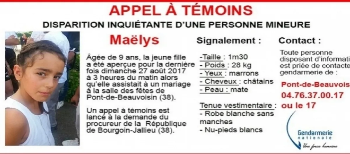 Que s'est-il passé le 27 août vers 3 heures du matin ? C'est la question que les enquêteurs et la famille de Maëlys, 9 ans, se posent depuis 4 jours... En effet, la fillette est portée disparue depuis samedi dernier alors qu'elle assistait à une fête de mariage. Maëlys s'amusait avec les autres bambins dans une pièce réservée aux enfants dans la salle des fêtes de Pont-de-Beauvoisin (Isère), quand tout à coup la petite fille fut introuvable.