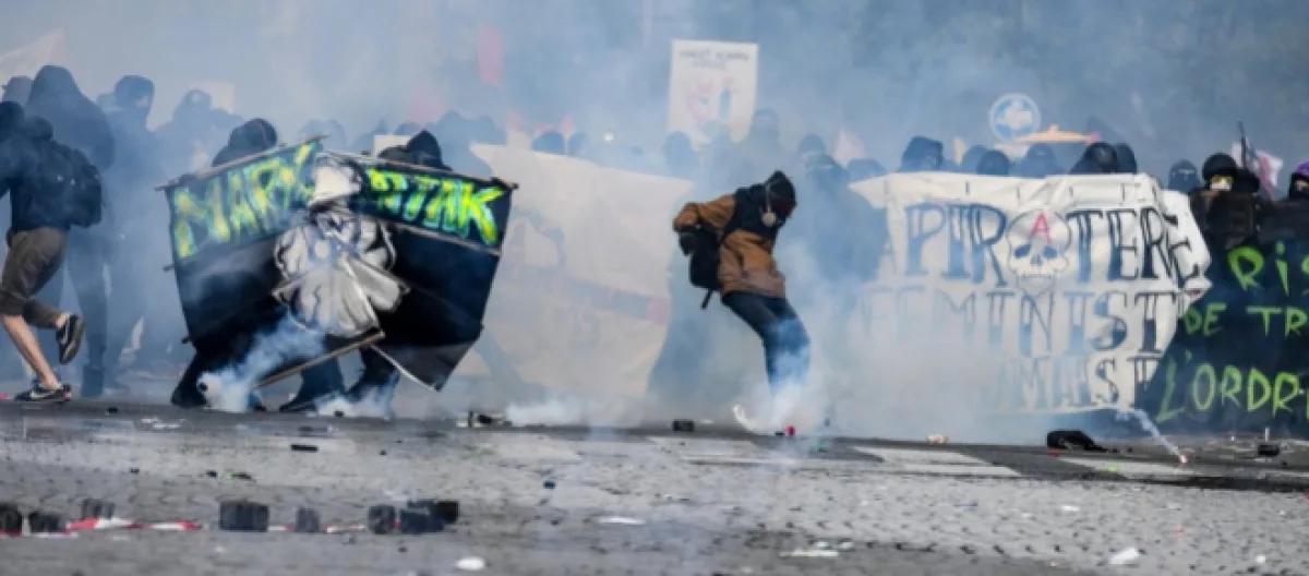 La police a utilisé des canons à eau et des gaz lacrymogènes contre des manifestants masqués qui ont brisé des vitrines et lancé des cocktails Molotov mardi soir, après un rassemblement pacifique prévu le 1er mai par les syndicats. La CGT avait appelé à pas moins de 240 manifestations et rassemblement partout en France afin de protester contre l'action du gouvernement. Les affrontements de mardi se sont déroulés dans un contexte de fort mécontentement syndical, malgré une gauche désunie. En effet, FO avait décidé de ne pas défiler en ce 1er mai.