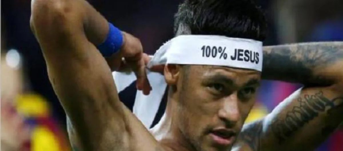 Jusque là plutôt discret quand à son appartenance religieuse, Neymar est sorti de sa réserve après avoir marqué le troisième et dernier but face à la Juventus de Turin lors de la victoire du Barça en ligue des champions. Le jeune homme a arboré un bandeau où il était inscrit "100 % Jesus". Le site Internet Info évangélique s'est empressé de reprendre l'information dans un article intitulé "Neymar est 100 % Jesus", mais le geste n'a pas plu à tout le monde et l'indignation s'est exprimée sur Twitter.