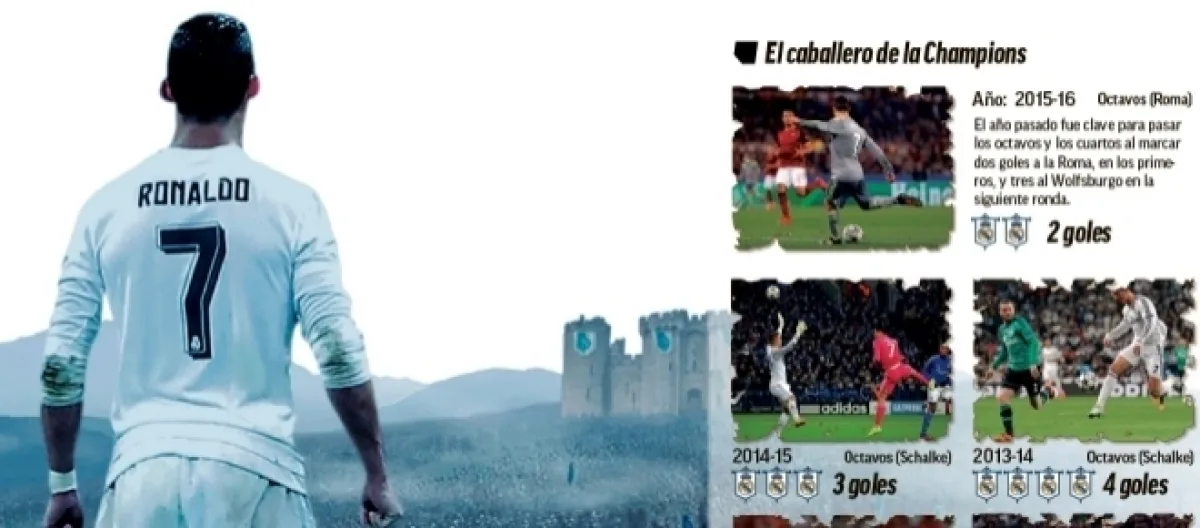 Ce qu’il a fait l’année dernière, marquer un but à l’aller à l’Olimpico ainsi qu’au retour au Bernabéu contre la Roma, est une habitude dans sa carrière depuis qu’il porte l’écusson du Real Madrid, bien que le temps soit passé depuis l’été 2009 durant lequel le portugais est arrivé de Manchester United au Real Madrid. Les chiffres sont, comme depuis toujours dans sa carrière, du côté du portugais. Lorsque la phase de groupe est terminée et que 180 minutes décident de la suite de la compétition, c’est à ce moment qu’un Cristiano impériale fait son apparition.