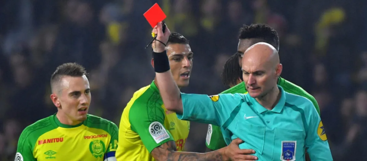 Après avoir fait plusieurs roulades, l'arbitre n'a pas voulu laisser ce geste impuni et a jugé bon de le faire savoir d'une manière peu conventionnelle. C'est en se relevant qu'il a taclé le joueur en retour pour se venger à son tour. A la grande surprise du stade tout entier et des joueurs sur la pelouse. Ne comptant pas s'arrêter en si bonne bonne voie, Tony Chapron a décidé d'avertir le joueur d'un carton jaune qui lui a valu l'expulsion puisqu'il s'agissait de son deuxième de la partie. Pour couronner le tout, l'arbitre a contre toute attente accordé un coup franc au Paris Saint-Germain. L'ensemble de son oeuvre lui aura valu une virulente altercation avec les joueurs du FC Nantes et en particulier Diego Carlos qui l'a vivement bousculé, au point que Marquinhos, défenseur de l'équipe adverse, soit venu calmer les esprits et séparer les deux protagonistes.
