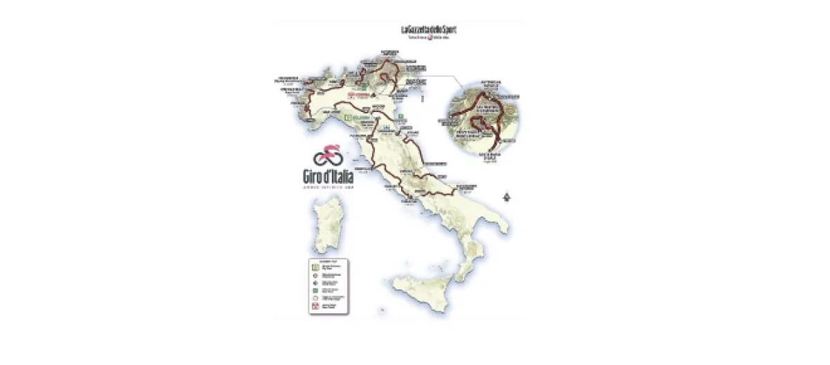 Parmi les montées les plus rudes, on retiendra la présence du mur des Principi di Acaia (20%), du Montoso (HC), du Colle del Lys, du Pian del Lupo, mais aussi celle jusqu'au Serru Lake (14-15%). A noter que la 15ème étape entre Ivrea et Como proposera une variante du Tour de Lombardie. Et le feu d'artifice en troisième semaine : le Passo Gavia, le Mortirolo, le Passo San Boldo, la Cima Campo, le Passo Manghen, le Passo Rolle et le Croce d'Aune-Monte Avena que l'on ne présente plus.