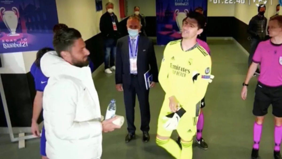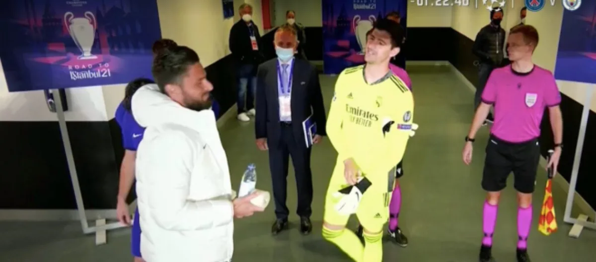 Alors que le numéro 9 des Bleus a félicité l'ancien gardien de Chelsea à la mi-temps, ce dernier s'est permis de troller Timo Werner, comme vous pouvez le voir sur cette séquence dévoilée par RMC Sport qui buzz sur les réseaux sociaux :