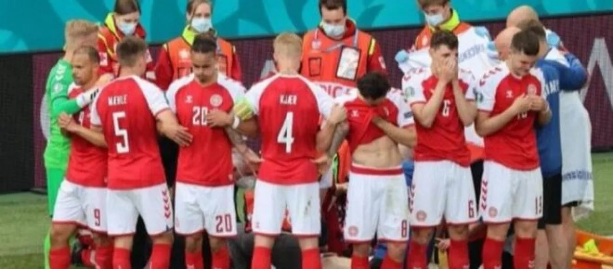 Christian Eriksen joueur professionnel de 29 ans, évoluant sous les couleurs de l'Inter de Milan en club, et en sélection nationale danoise a soudainement perdu l'équilibre avant de tomber lourdement au sol. Martin Braithwaite et Thomas Delaney lui ont promptement porté assistance. Très inquiets, ses partenaires et adversaires ont immédiatement fait signe à l'arbitre d'appeler les sauveteurs qui sont intervenus aussitôt. Très vite ses coéquipiers ont eu le réflexe de créer un « cordon de sécurité » autour du joueur et du personnel médical qui a entamé un massage cardiaque qui a durée de longues minutes.